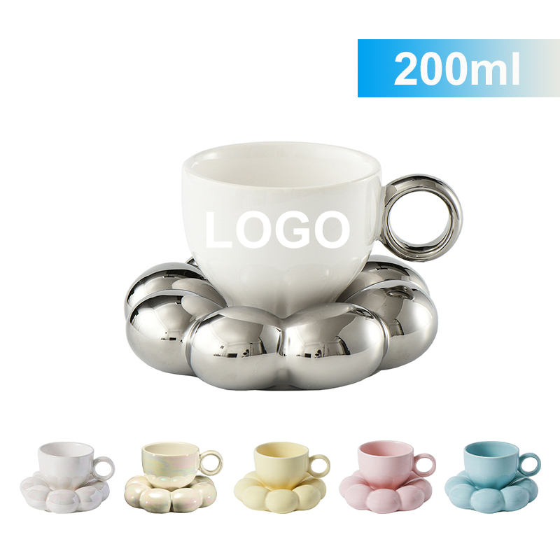 200ml flower shaped ceramic coffee cup and plate
