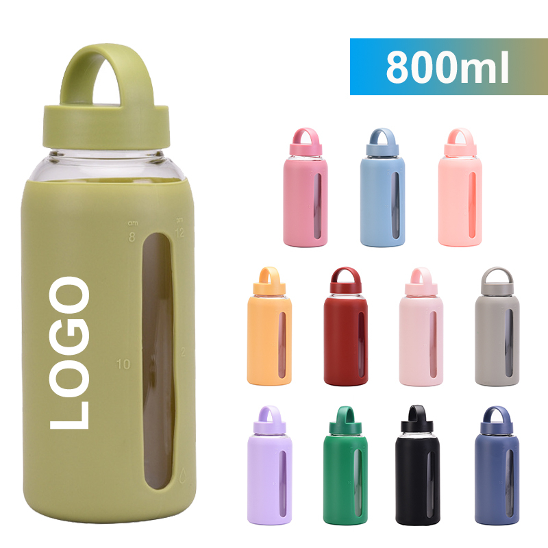 800ml Glass Glass Silicone Cover Time Scale Water Cup